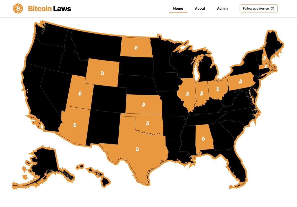 States that are working on Bitcoin reserve type legislation. Also, the Federal Reserve said today they see no problem with banks offering bitcoin custody services. All banks will custody bitcoin for their customers within a few years now that they are free to do so. Those who don't will lose customers, which will incentivize all of them to offer the services. Gradually then suddenly. Graph by Julian Fahrer (https://x.com/Julian__Fahrer)